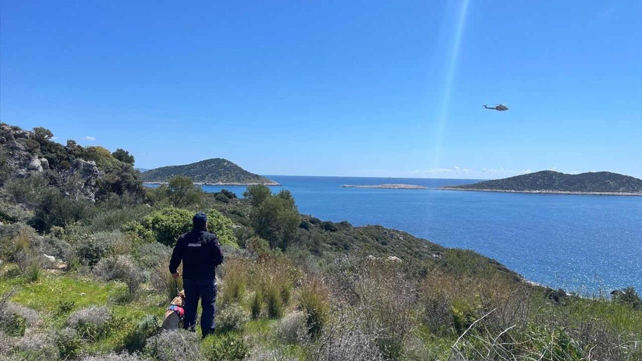 Sahil güvenlik ekipleri helikopter ve botlarla, jandarma ise karadan köpeklerle arama çalışmasına devam ediyor.