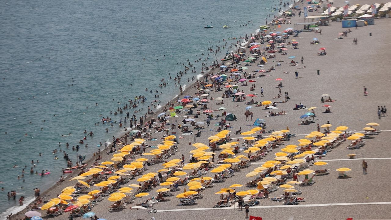 Sıcak havanın tadını çıkarmak isteyen kent sakinleri ve turistler, Konyaaltı sahilini tercih etti.