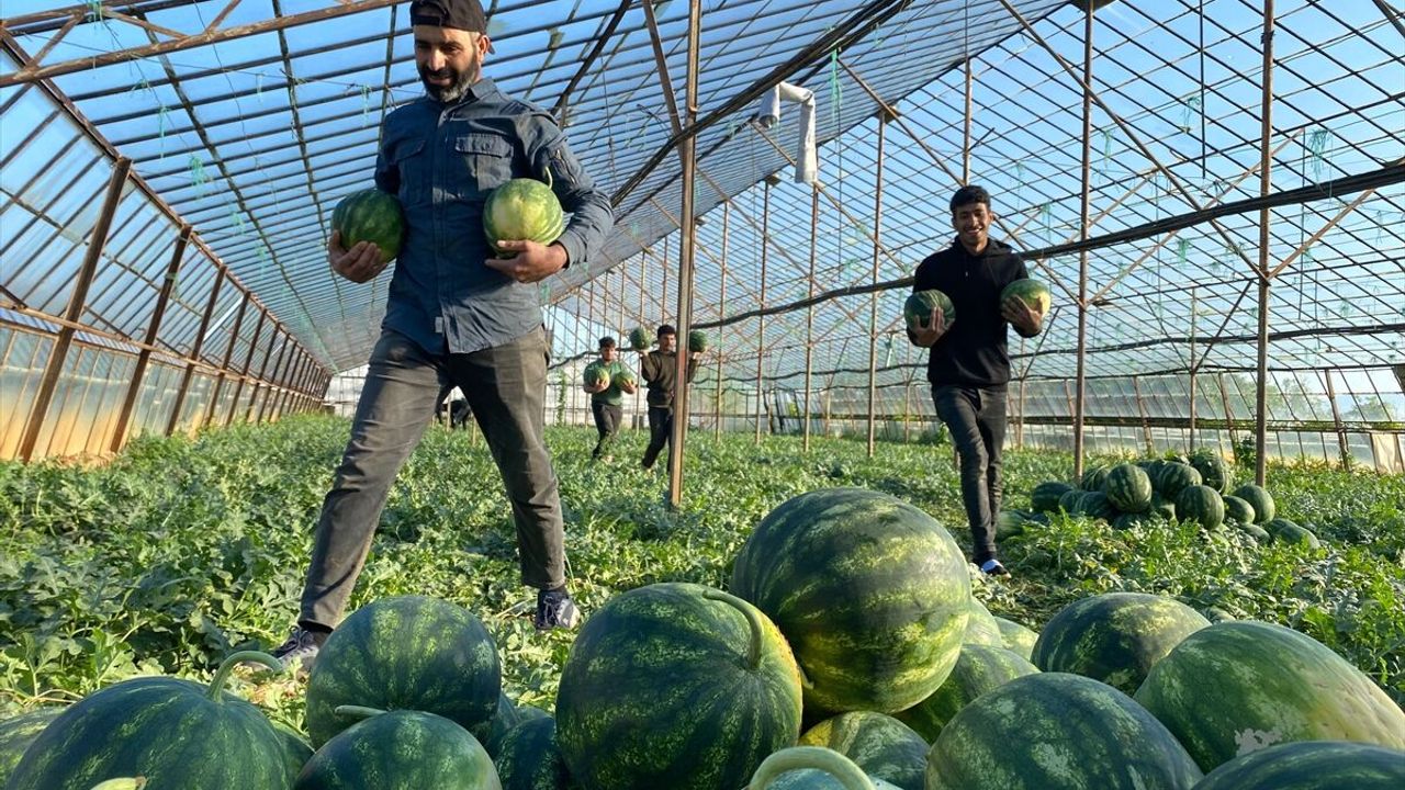 Ağırlıkları 5 ila 10 kilogram olan turfanda karpuzlar, özenle toplanarak başta iç piyasa olmak üzere satışa hazırlanıyor. İlk hasadın büyük bölümü yurt içinde tüketileceği, ilerleyen günlerde ise ihracatın başlayacağı belirtildi.