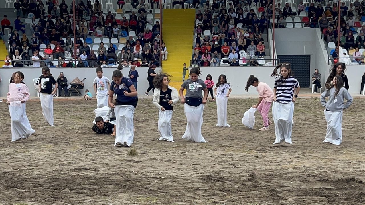 Festivalde çocuklar arasında çuval yarışması da yapıldı.