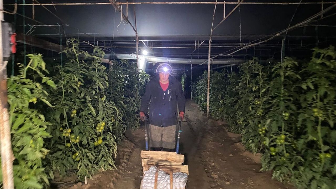 İhsaniye Mahallesi'nde bulunan 27 dönümlük domates serasında da don nöbeti gece boyunca sürdü.