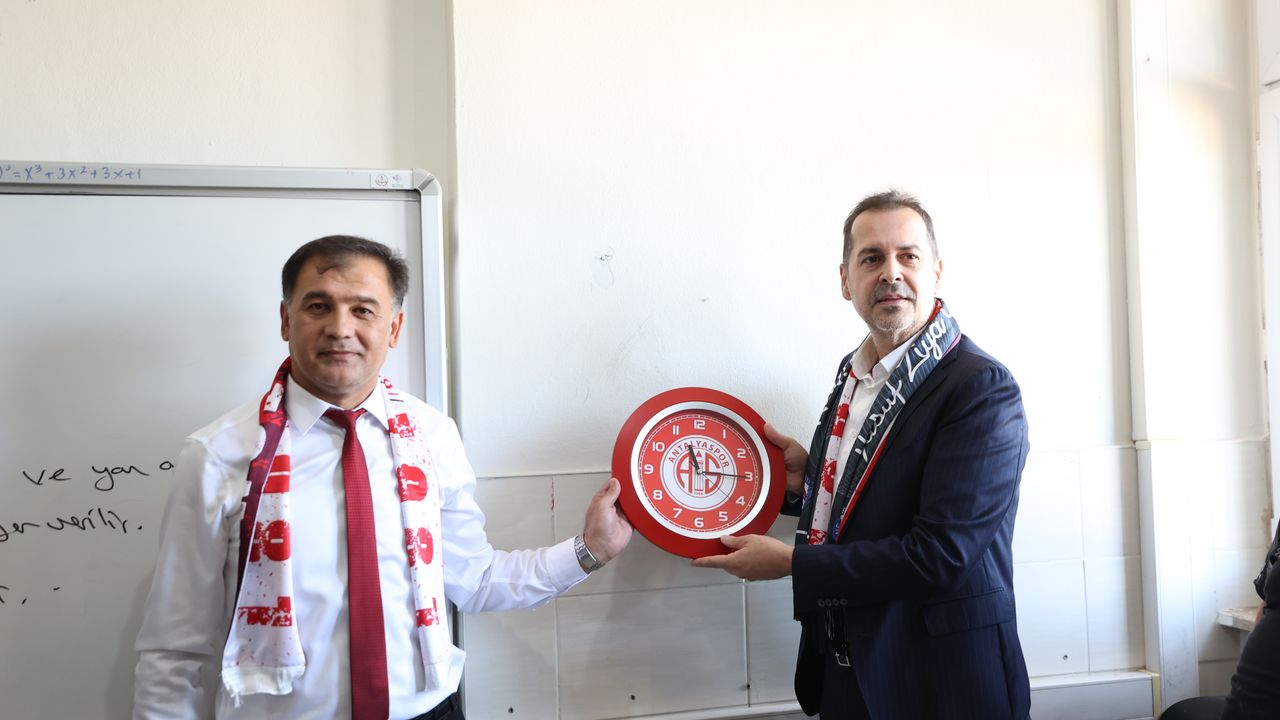 Bu kapsamda 'Okullarda Antalyaspor logolu saat asma' kampanyası başlatan Antalyaspor taraftarı Tansu Duran, sınıflara asılması için saat hediye etti.