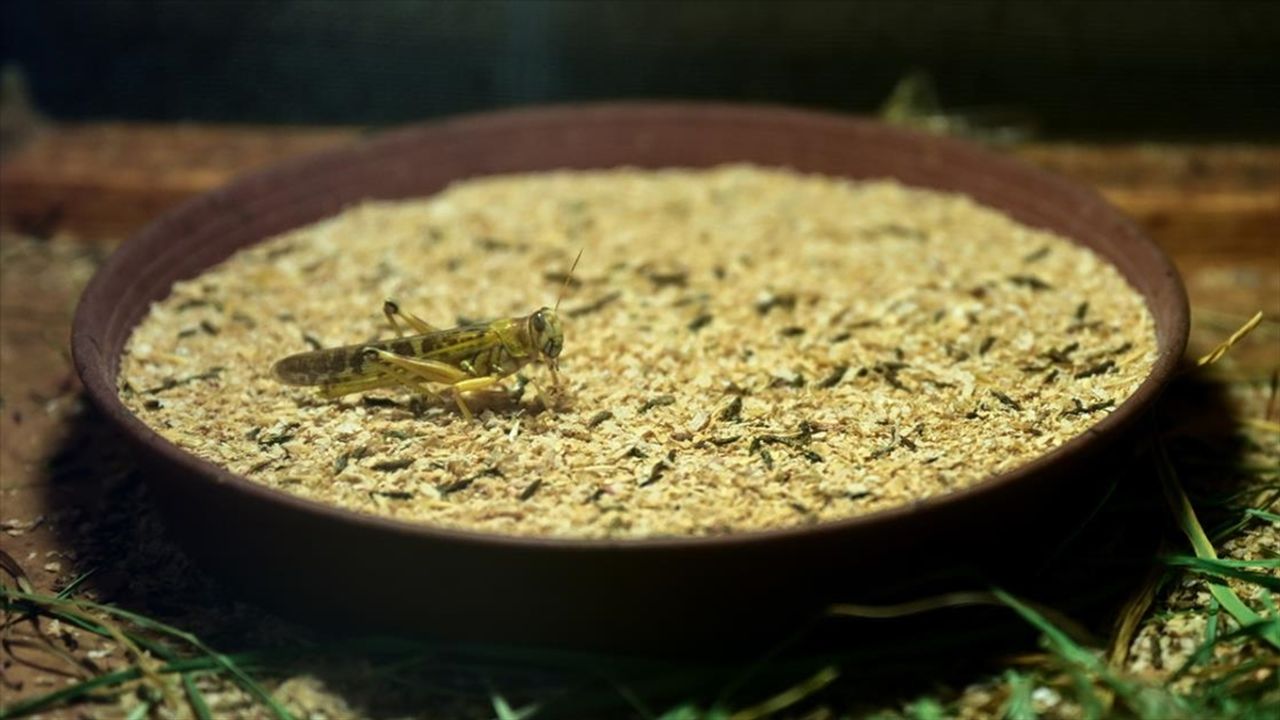 Çekirgeler için 450 kafesin bulunduğunu belirten Gökgöl, 'Çekirge her türlü canlı için temel gıdadır. Protein oranı çok yüksektir. Her türlü canlı bunu tüketebilir. Bu çekirgeler doğada bildiğimiz çekirgeler gibi çok zıplayan, sağa sola kaçan, yakalaması zor olan canlılar değildir.' dedi.