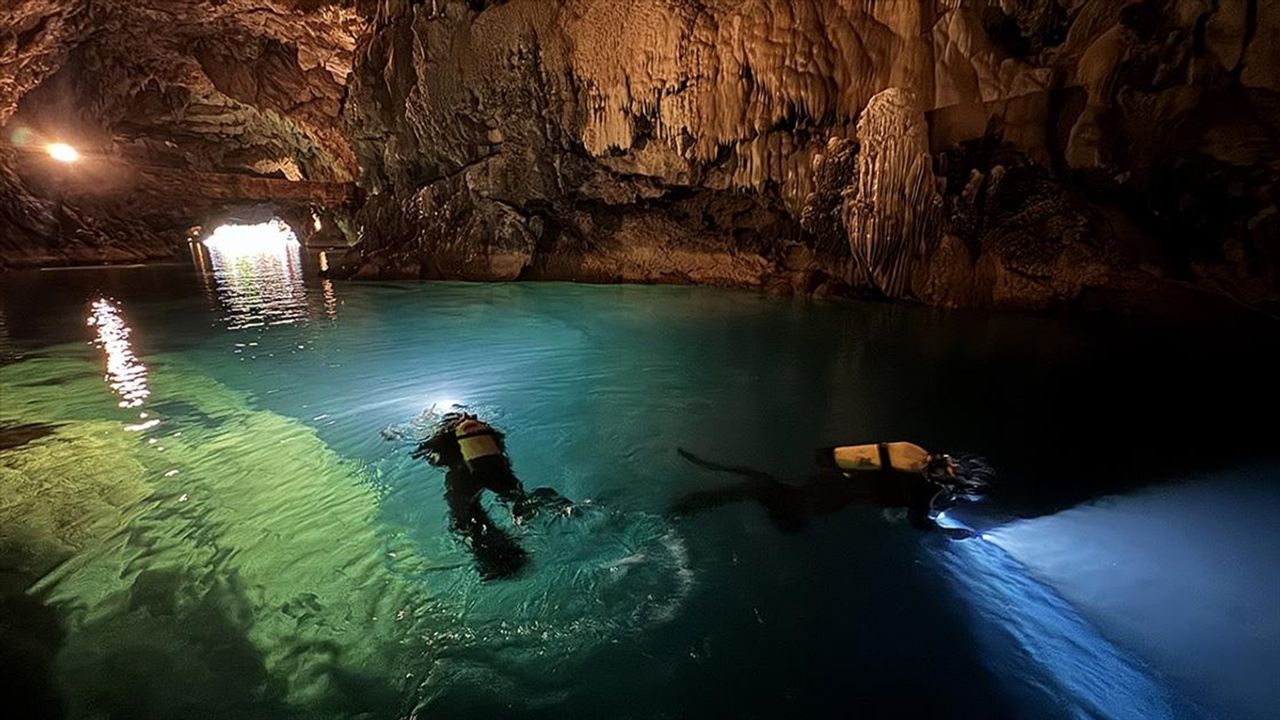 Su derinliği bazı bölgelerinde 40 metreye ulaşan mağarada AA foto muhabiri Mahmut Serdar Alakuş ile Akdeniz Üniversitesi Su Ürünleri Fakültesi'nden Prof. Dr. Mehmet Gökoğlu ve ekibi dalış gerçekleştirdi.