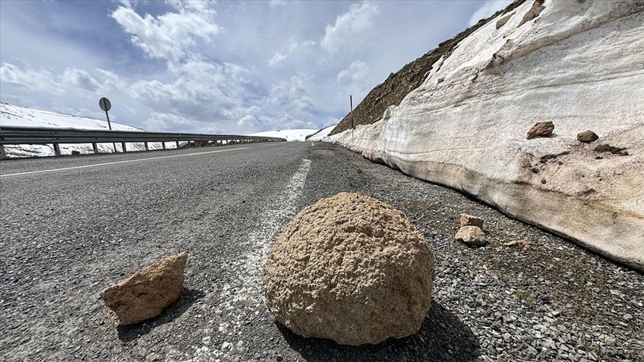 Havaların ısınması ve toprağın yumuşamasıyla yol kenarına kaya parçaları yuvarlandı.