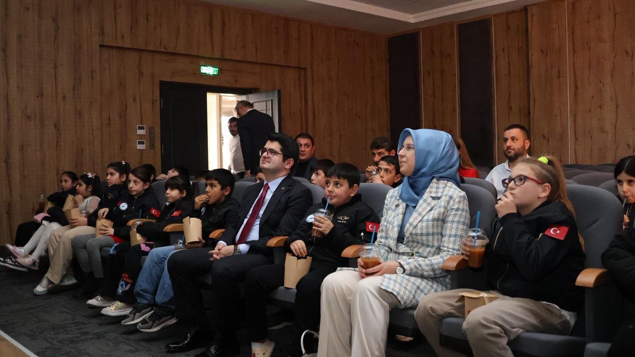 Arsuz Kaymakamı Fatih Eroğlu ile eşi Büşra Eroğlu'nun da katıldığı etkinlikte çocuklar, 'Aslan Hürkuş 4: Hürjet Oyunda' animasyon filmini izledi.