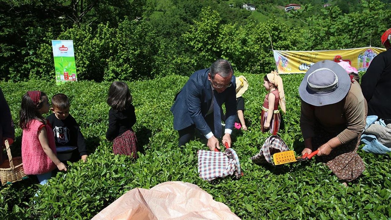 ÇAYKUR Genel Müdürü Yusuf Ziya Alim, Kemalpaşa ilçesine bağlı Köprücü köyünde düzenlenen etkinlikte üreticiler ve çocuklarla çay hasadı gerçekleştirdi.