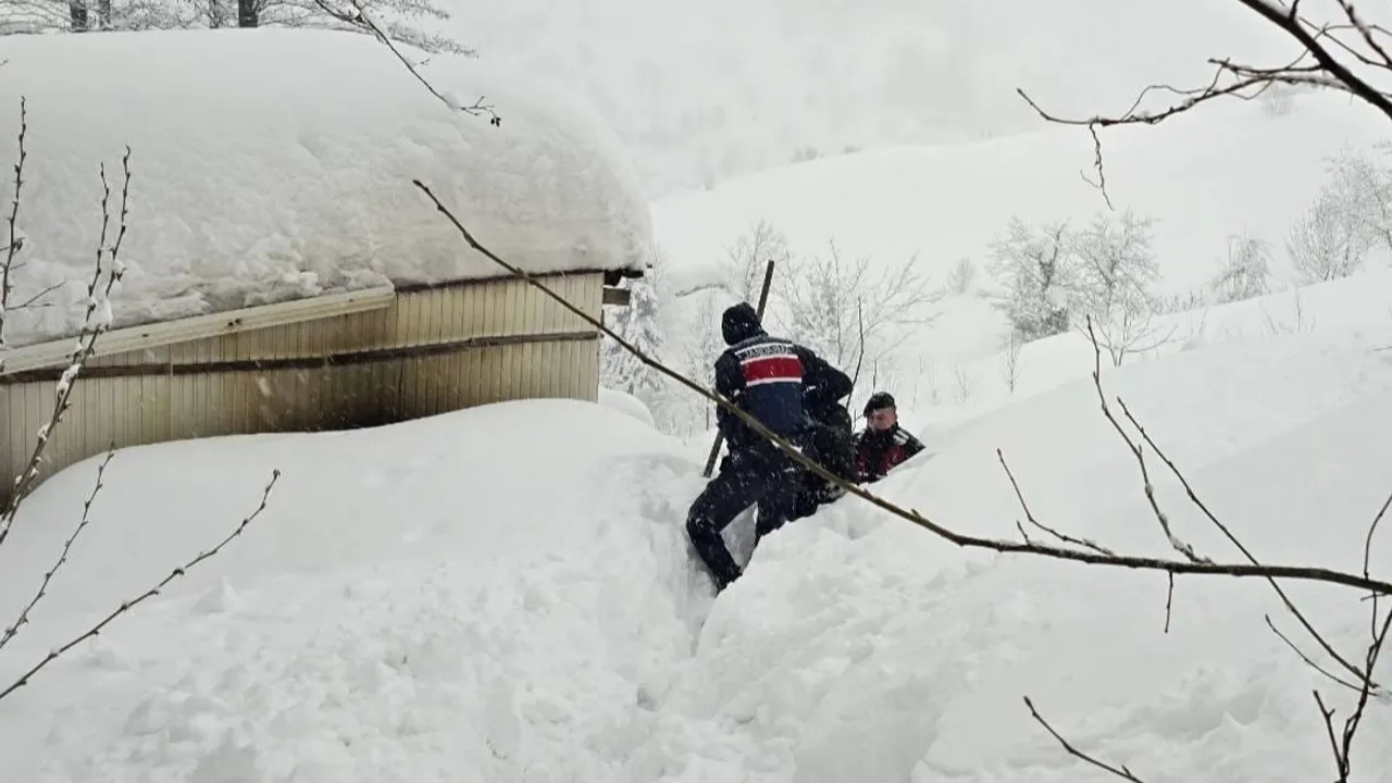 Evin etrafındaki yaklaşık 1 metrelik kar yığınlarını temizleyen Jandarma ve köylüler Cemil Ustabaş’ı evinde buldu.