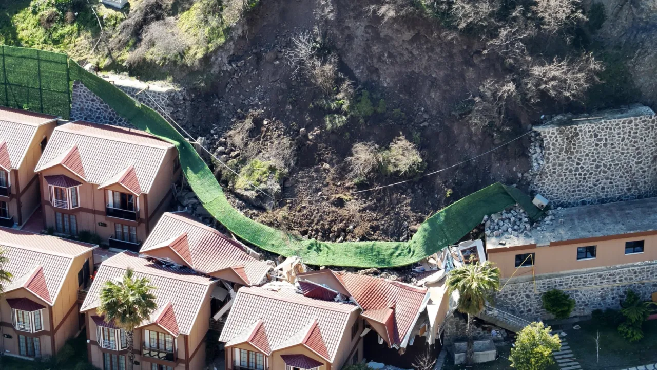 Artvin il merkezinde yaşanan heyelanda butik otel olarak hizmet veren bir tesisin bazı bölümleri yıkıldı.Bayram SARAYOĞLU / ARTVİN (İGFA) - Artvin Çayağzı Mahallesi Kaledibi mevkisinde bağımsız bölümlerden oluşan turistik tesisin arka kısmındaki alanda heyelan meydana geldi. Heyelan sırasında yıkılan istinat duvarı, iki yapıda hasara yol açtı.