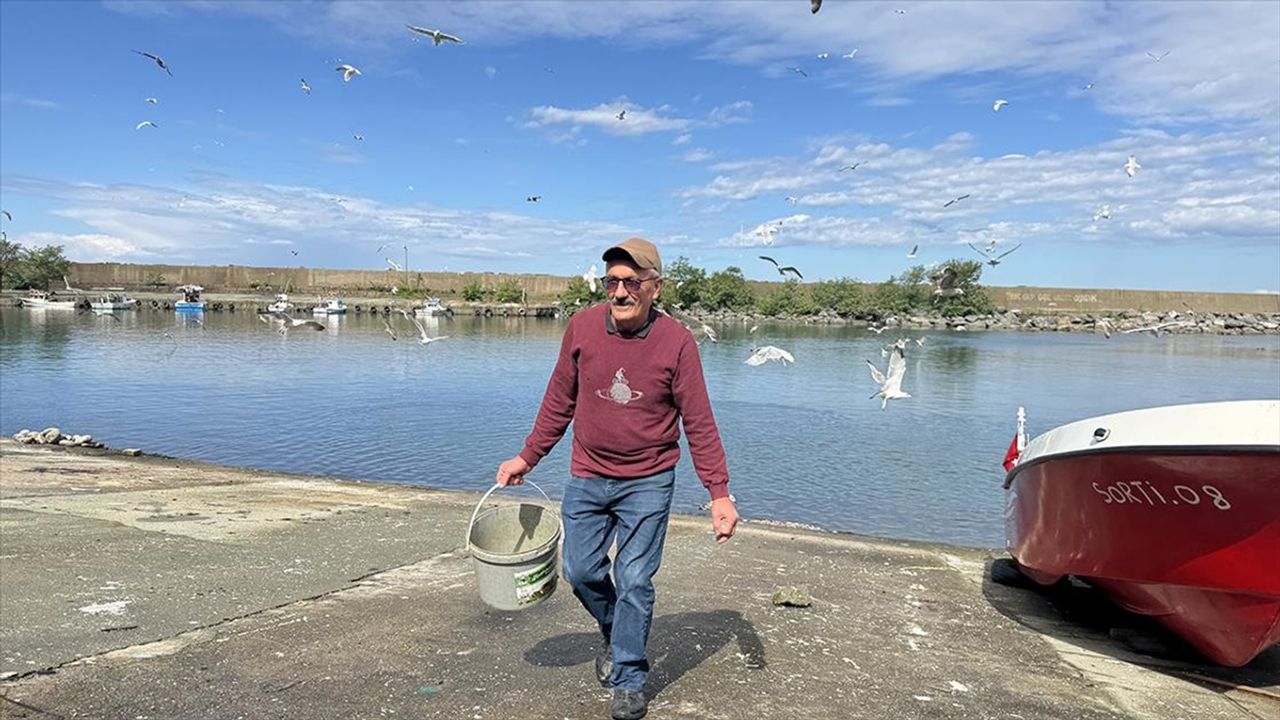 ARTVIN (AA) - İlçedeki bir balık restoranında balık ustası olarak çalışan 65 yaşındaki Abay, balık artıkları ve ekmekleri çöpe atmayarak martılar için biriktiriyor.