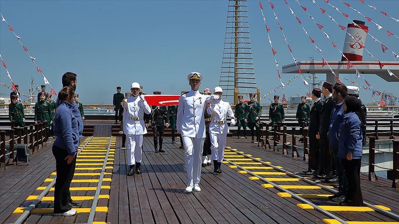 SAMSUN (AA) - Samsun'da 19 Mayıs kutlamaları kapsamında, Gençlik ve Spor Bakanlığı ile Milli Savunma Bakanlığının ortak çalışması "TCG Anadolu ile Mavi Vatanda İstanbul'dan Samsun'a Milli Mücadele Yolculuğu"nda, Türkiye'nin en büyük yerli ve milli askeri gemisiyle 81 ilden Samsun’a gelen gençlerin taşıdığı Türk bayrağı askerlere teslim edildi.