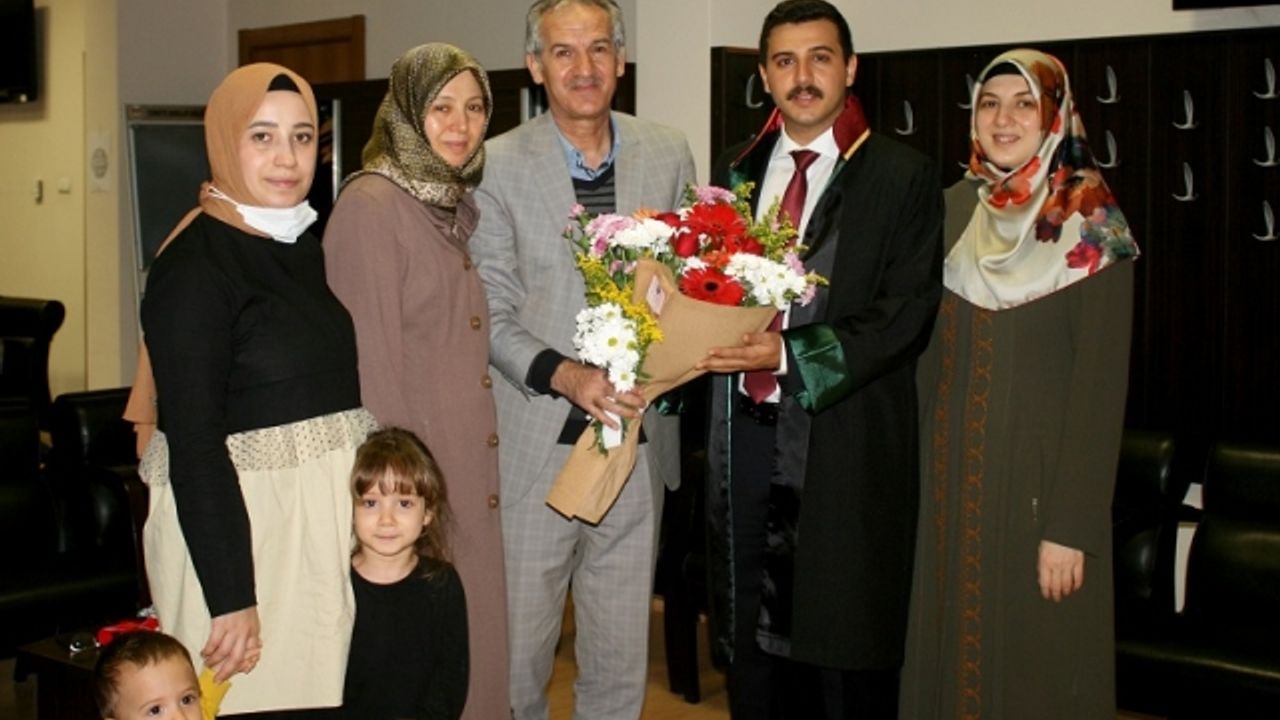 İzmir 9 Eylül Üniversitesi Hukuk Fakültesi mezunu Ahmet Mustafa Ergin, staj döneminin ardından yemin töreniyle ruhsatnamesini alarak cübbesini giydi.