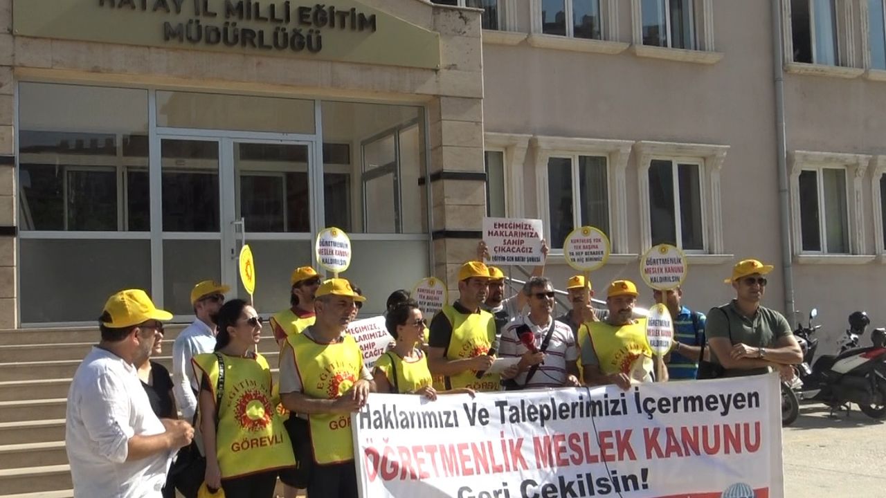 Eğitim Sen Adına Açıklamalarda bulunan Şube Başkanı Özgür Tıraş, “Eğitim emekçilerini bölerek ayrıştıran, öğretmen meslek kanunu ve yönetmeliği iptal edilmelidir.” dedi.