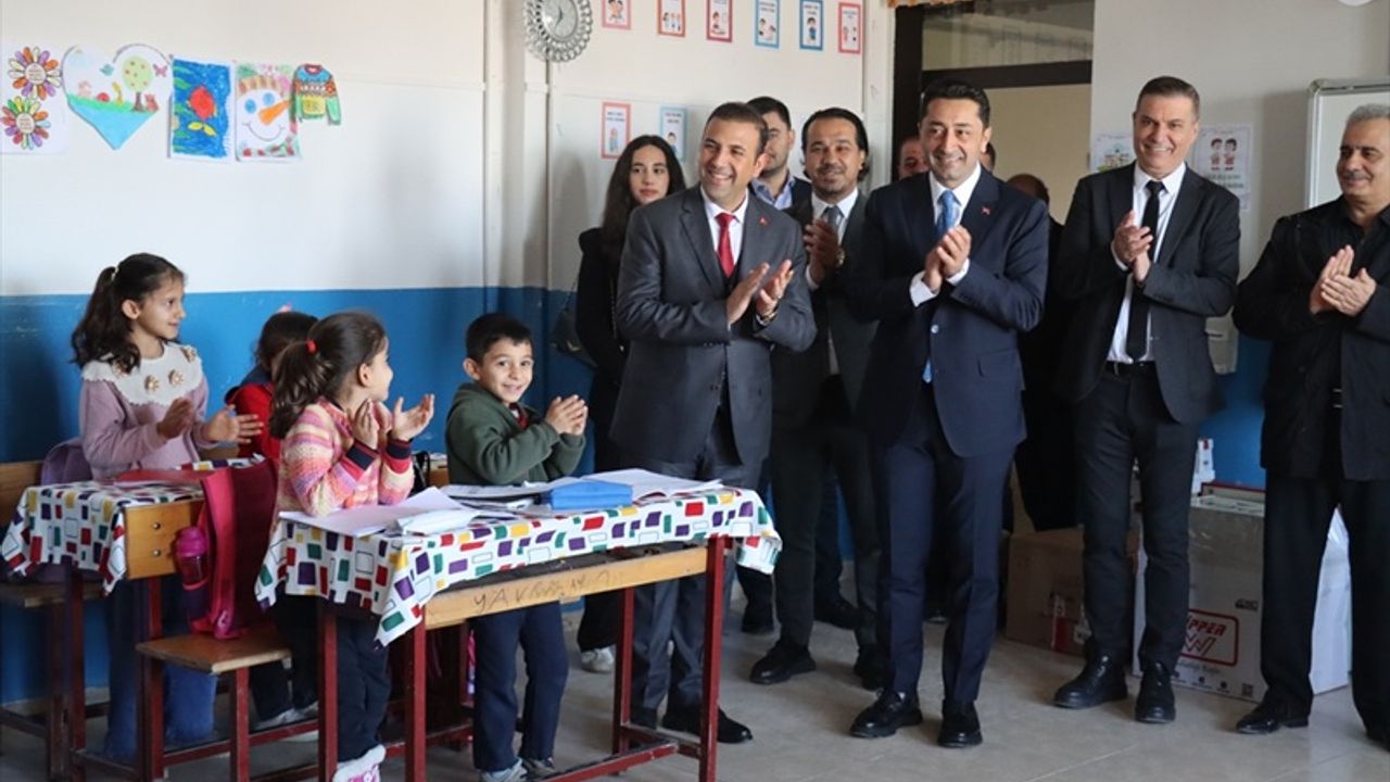Salıcı ve beraberindekiler, ilk olarak Altınözü ilçesindeki Büyükburç İlkokuluna ziyarette bulundu.