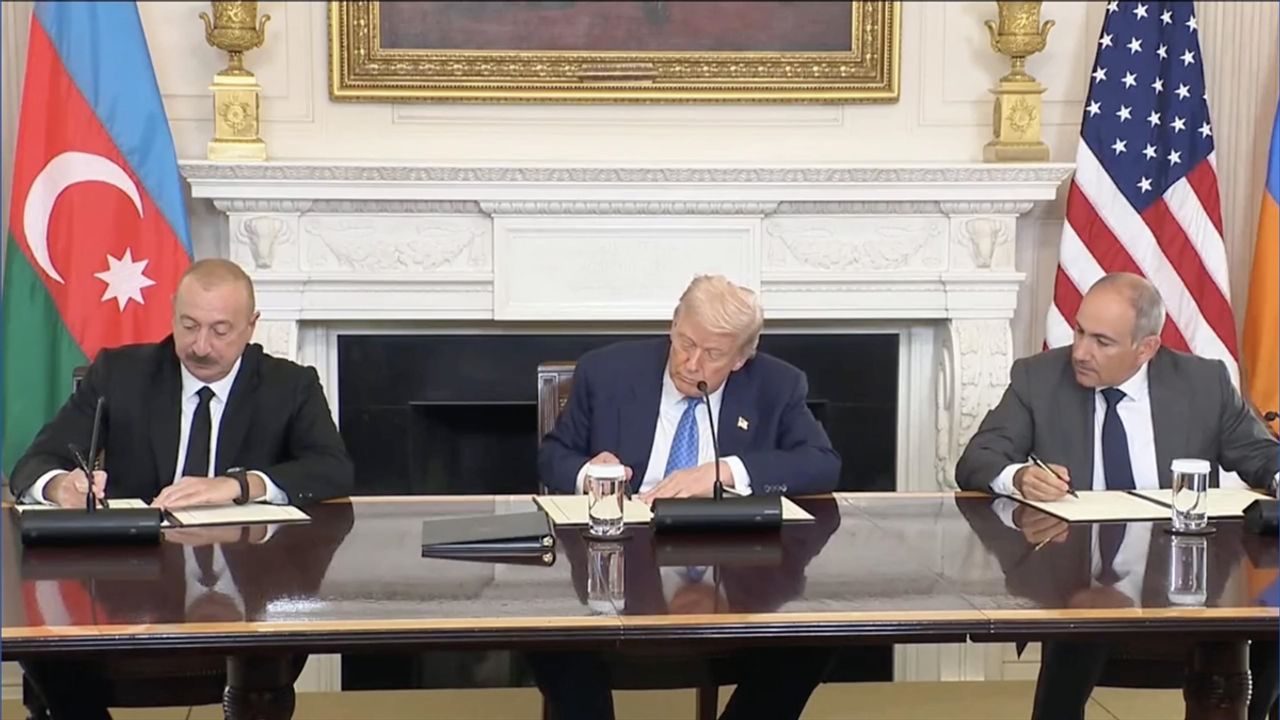 WASHINGTON (AA) - ABD Başkanı Trump, Beyaz Saray'da düzenlenen barış zirvesinde, Azerbaycan Cumhurbaşkanı Aliyev ve Ermenistan Başbakanı Paşinyan'ı ağırladı.