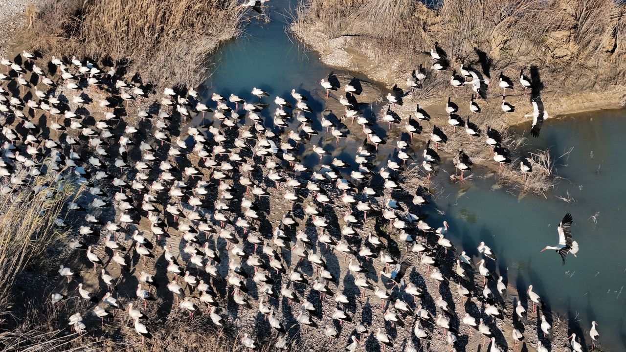 MERSİN (AA) - ÖMER TARSUSLU - Göçmen kuşların Doğu Akdeniz'deki mola noktalarından Mersin'deki sulak alanlar, havaların ısınmasıyla çok sayıda leylek ve pelikanı ağırlamaya başladı.