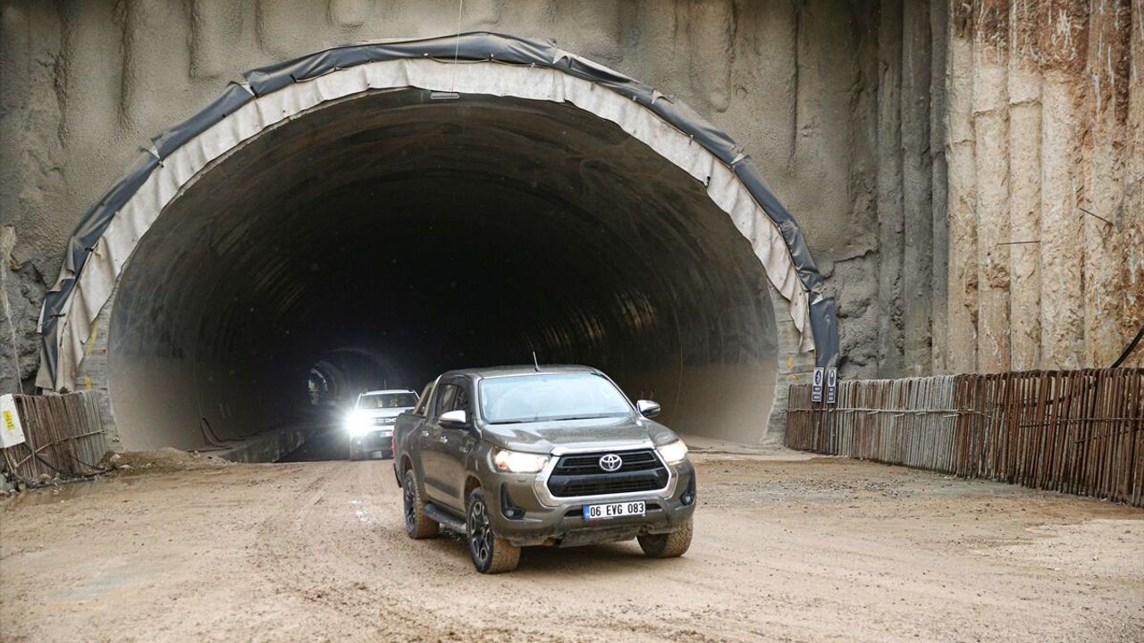 Yapımı süren otoyolun tünellerinde incelemede bulunan Uraloğlu, inşası devam eden 720 metre uzunluğundaki T1 tünelinde direksiyon başına geçti.
