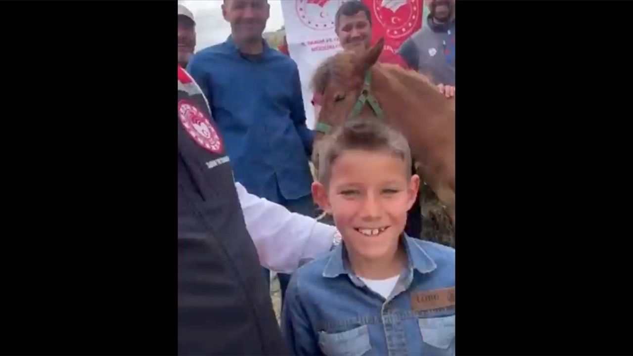 ANKARA (AA) - Bakanlıktan konuya ilişkin yapılan açıklamaya göre, Kayseri'nin Pınarbaşı ilçesi, Kurbağalık Mahallesi'nde yaşayan ve ailesi tarımla uğraşan ilkokul 1. sınıf öğrencisi Eyüphan Acar, merada otladığı sırada kürek kemiğinde çıkık ve ayak kısmında çatlak meydana gelen "Nazlı" isimli tayının tedavisi için Cumhurbaşkanlığı İletişim Merkezi (CİMER) aracılığıyla Bakan Yumaklı'dan yardım talebinde bulundu.