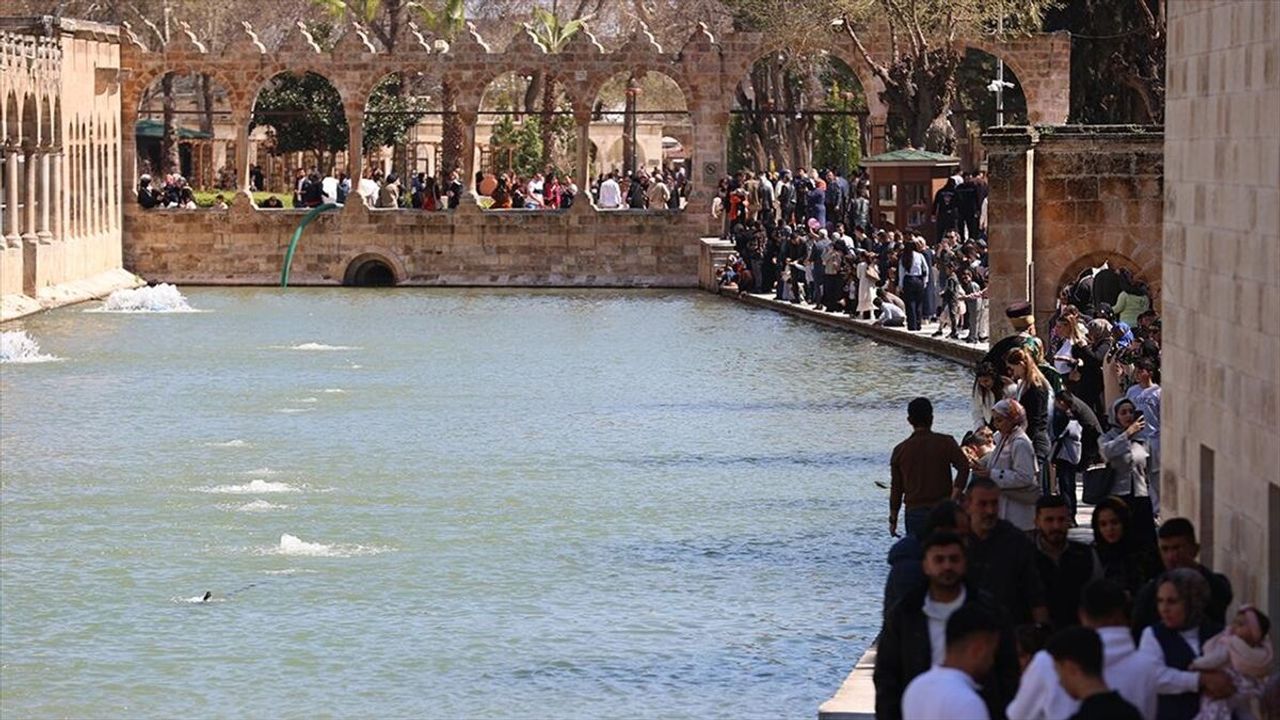 ŞANLIURFA (AA) - Termometrenin 20 dereceyi gösterdiği Şanlıurfa'da hafta sonu tatilini fırsat bilenler, 'dünyanın en büyük doğal akvaryumu' olarak bilinen ve inanç turizminde önemli yere sahip tarihi mekanı ziyaret ediyor.