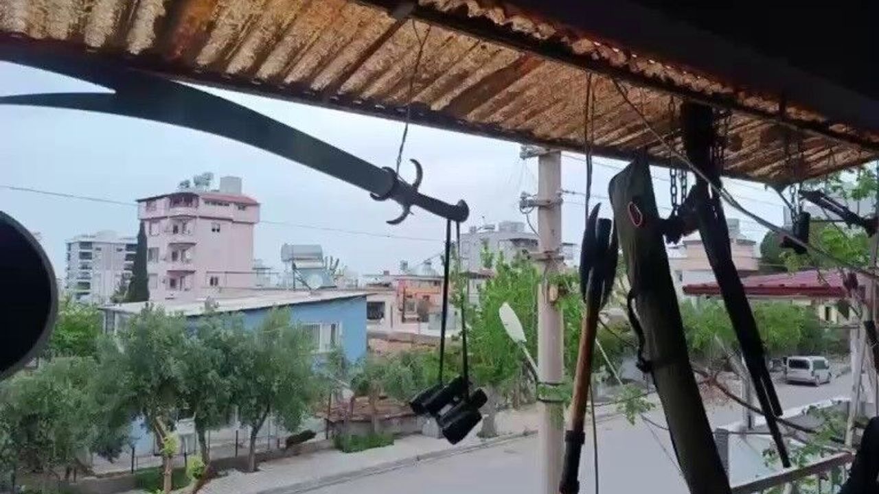 İhbar üzerine harekete geçen Hatay Emniyet Müdürlüğü ekipleri, 17 Nisan tarihinde söz konusu adrese operasyon düzenledi. Yapılan incelemede; balkon kısmında 1 adet tüfek, 2 adet tabanca ile birlikte balta ve kılıcın adeta çamaşır gibi asılı olduğu tespit edildi.