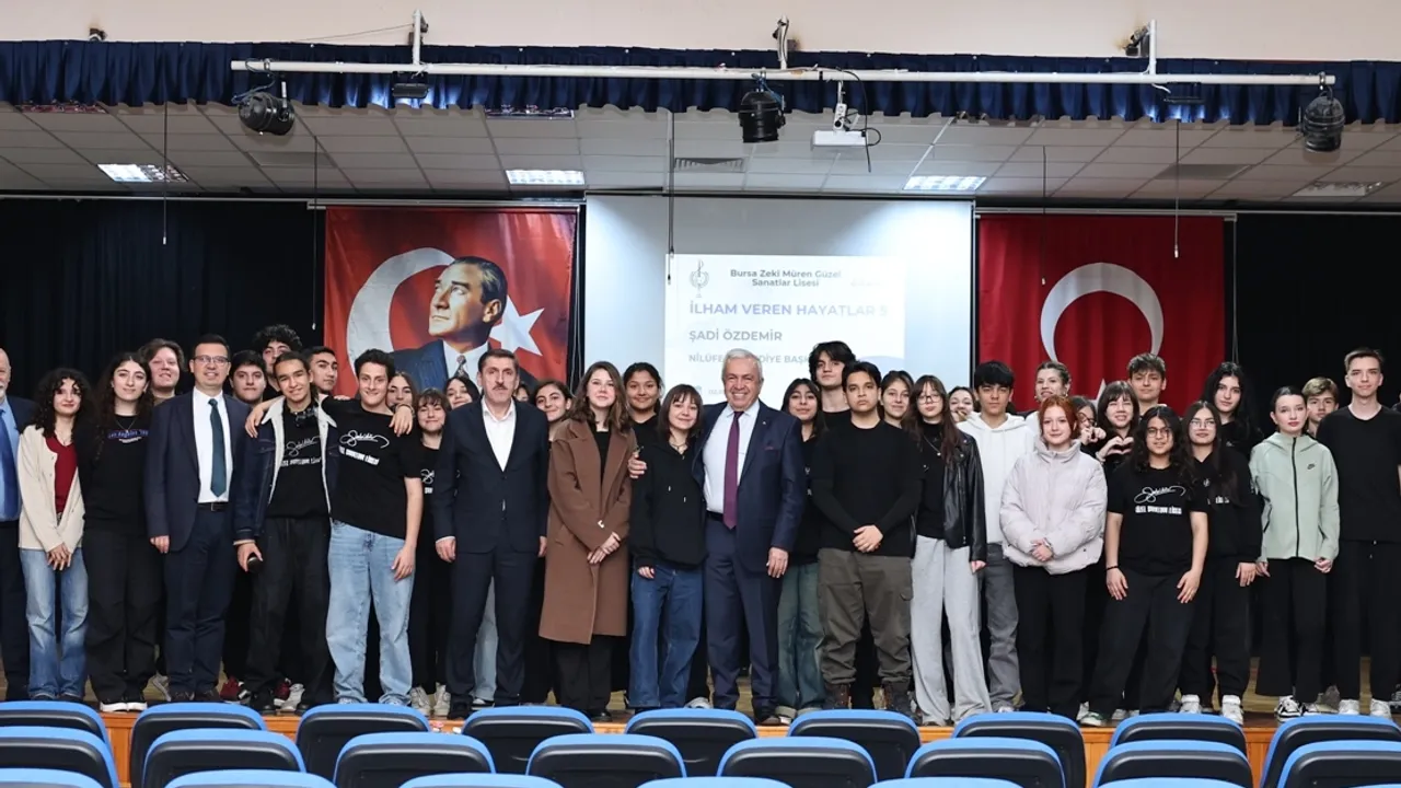 Bursa'da Nilüfer Belediye Başkanı Şadi Özdemir, Zeki Müren Güzel Sanatlar Lisesi öğrencileriyle bir araya geldi. Hayatından kesitler sunup, yaşadığı olumsuzlukları nasıl aştığını anlatan Başkan Şadi Özdemir, “Umutlarınızı ve mücadeleyi hiçbir zaman bırakmayın” dedi.BURSA (İGFA) - Bursa'da Nilüfer Belediye Başkanı Şadi Özdemir, Zeki Müren Güzel Sanatlar Lisesi’nde düzenlenen “İlham Veren Hayatlar 5” başlıklı söyleşiye katıldı.