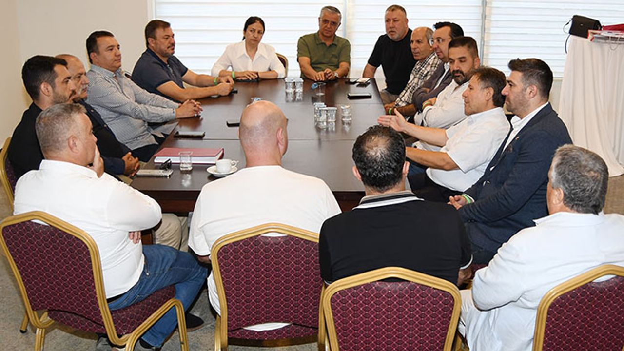 Kemer Belediye Başkanı Necati Topaloğlu, Akdeniz Gazeteciler Federasyonu’nun (AGF) Kemer Sealife Otel’de düzenlediği Başkanlar Kurulu Toplantısı öncesinde AGF Başkanı Gaye Coşkun ve federasyon yönetim kurulu üyeleriyle buluştu.