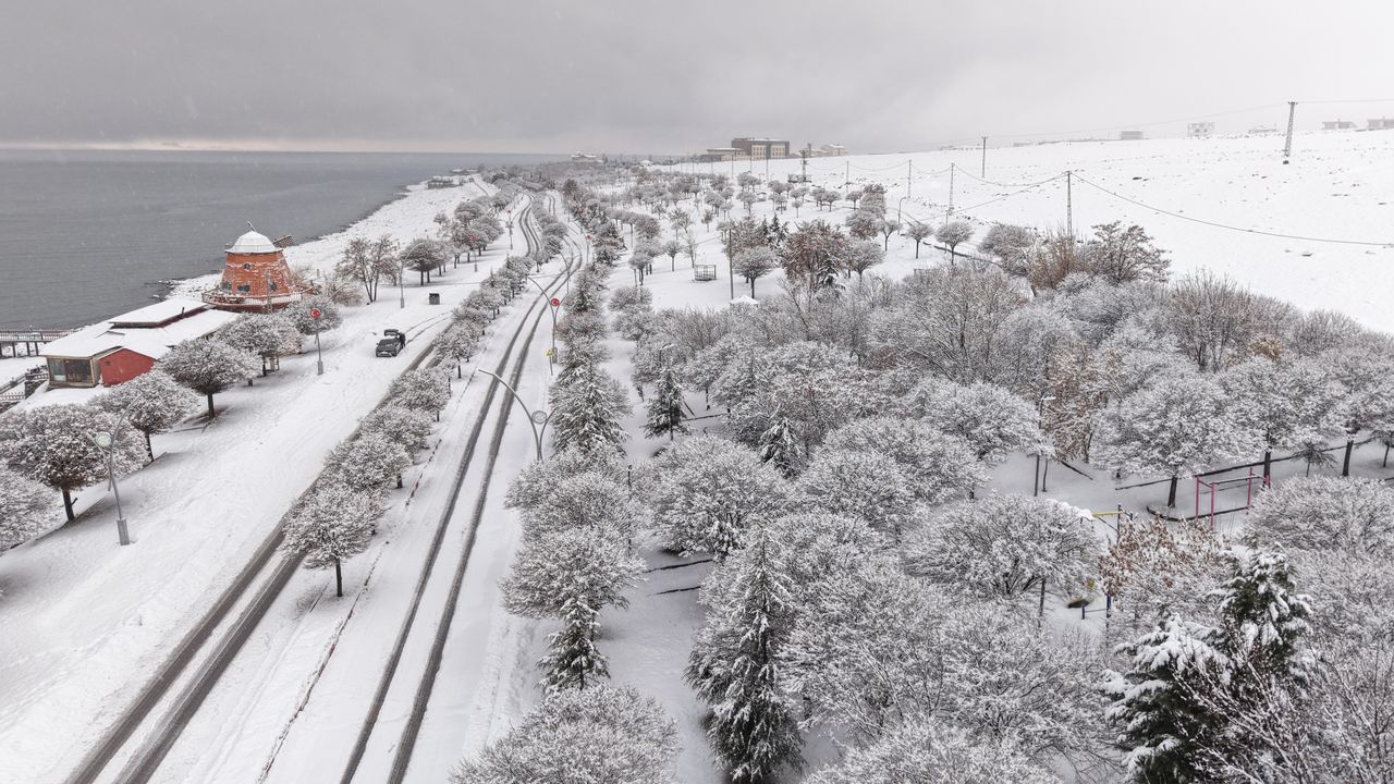 Sahilde de karla kaplanan alanlar güzel görüntüler oluşturdu.