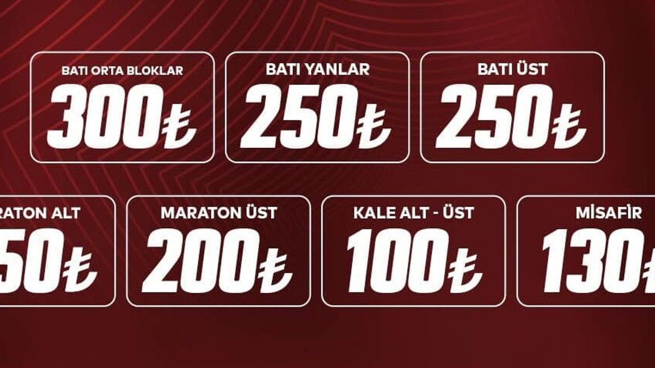 Karşılaşmanın bilet fiyatları şöyle: