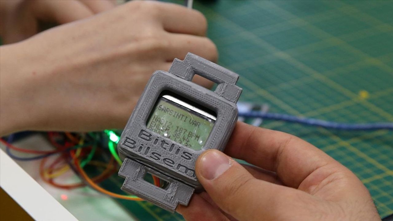 Proje danışmanı ve Bilişim Teknolojileri Öğretmeni Volkan Kaya'nın rehberliğinde çalışma yürüten öğrenciler, 3 aylık çalışmayla kişilerin bileğine gelecek şekilde içinde nabız, oksijen ölçümü yapan, GPS ve sarsıntı sensörü bulunan saate benzer bileklik tasarladı.