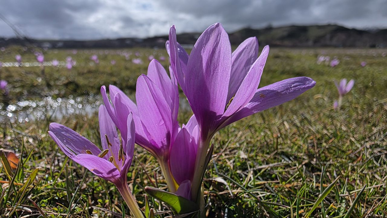 Halk arasında 'baharın müjdecisi' olarak bilinen mor renkli çiğdemler doğada güzel görüntüler oluşturdu.