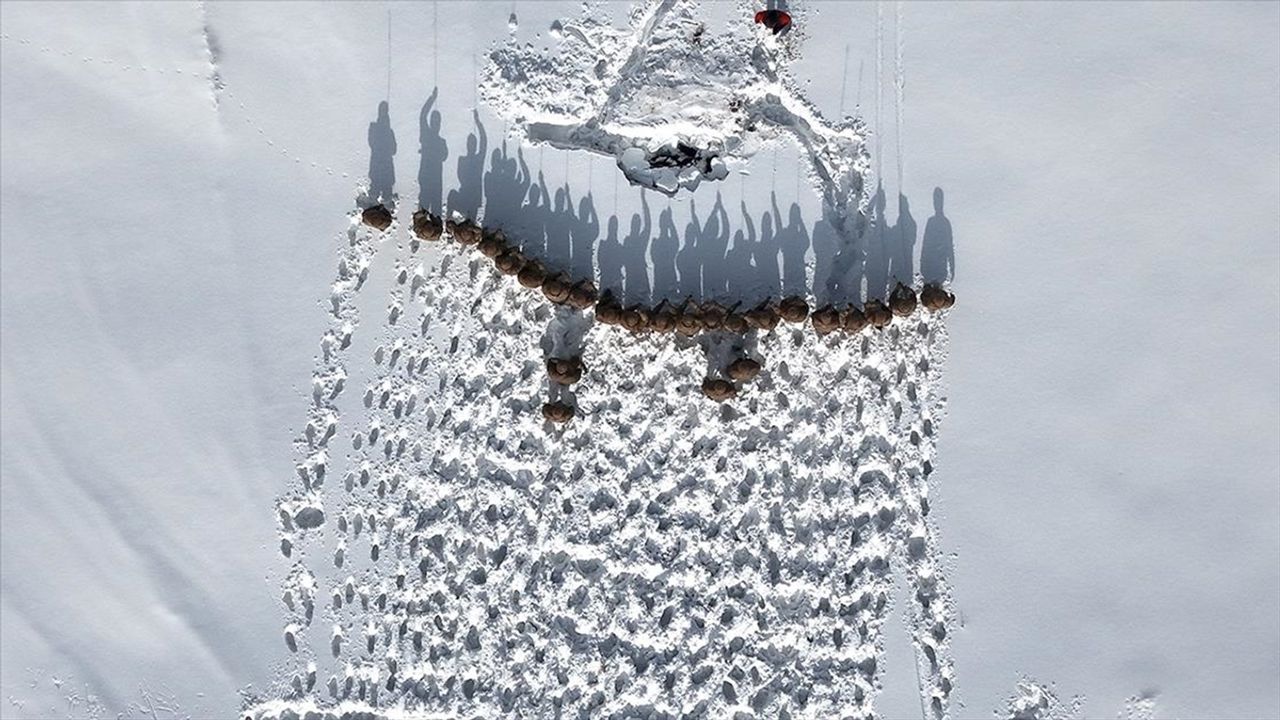 Hava sıcaklığının sıfırın altında 20 dereceye kadar düştüğü zorlu doğa koşullarında verilen eğitimlere katılan komandolar, olası çığ düşmesinde hayat kurtarmak için donanımlı hale geldi.