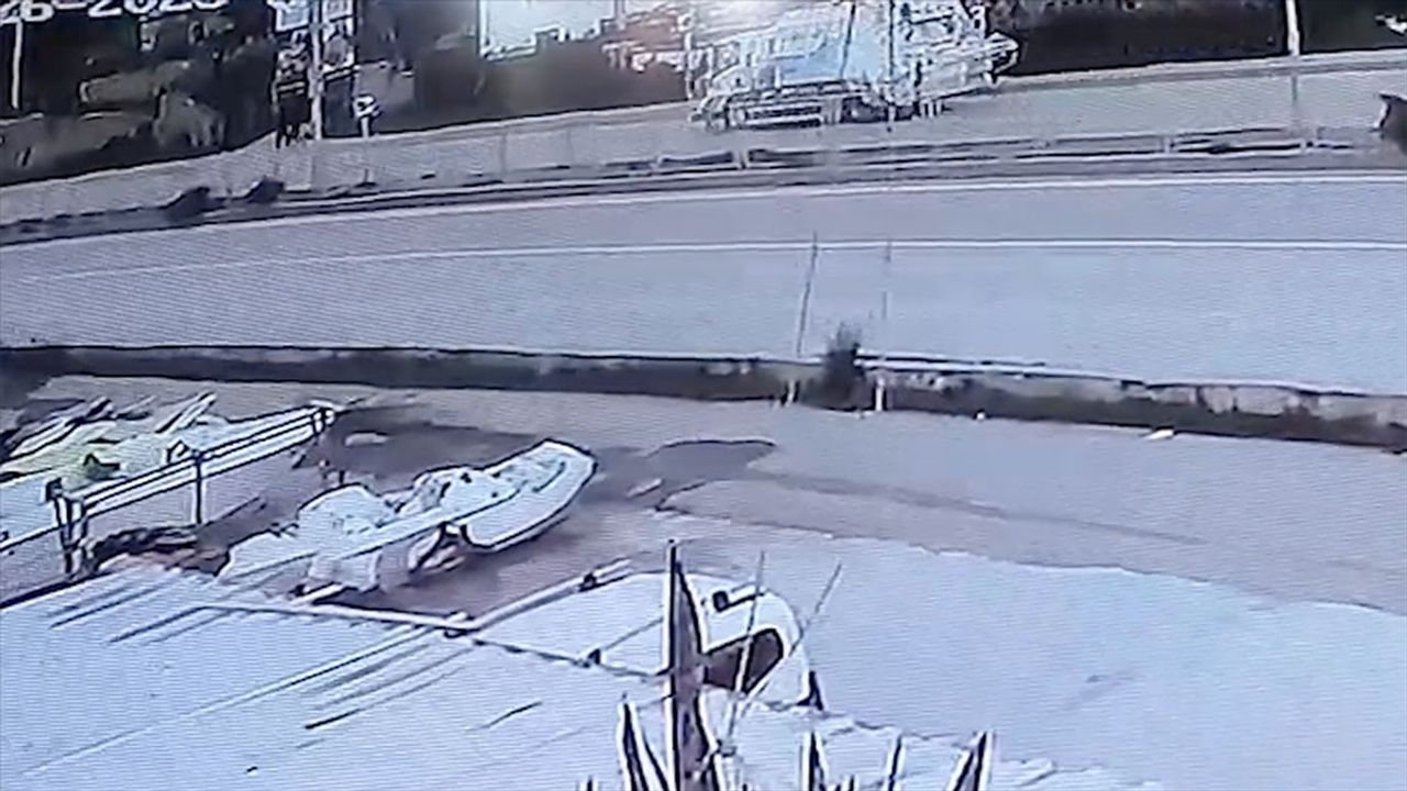 Kaza anı, çevredeki bir iş yerinin güvenlik kamerasınca kaydedildi.