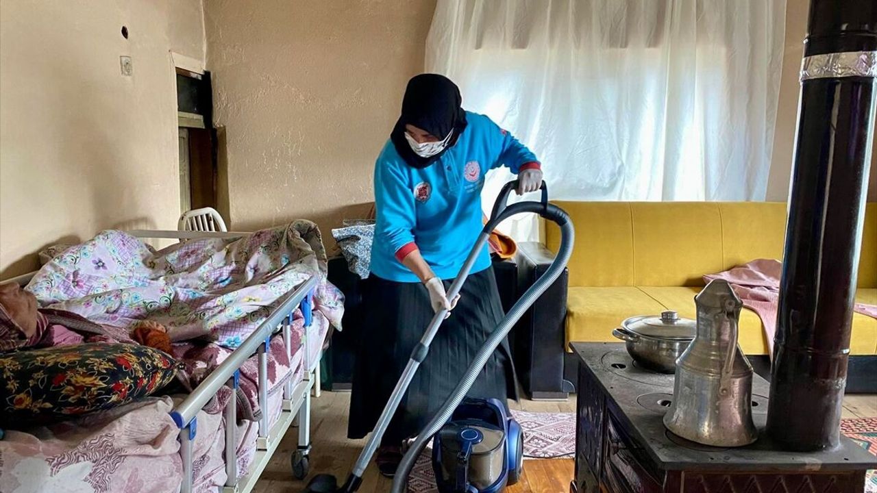 Yaşlı ve engelli vatandaşların evlerini ziyaret eden Sosyal Yardımlaşma ve Dayanışma Vakfı ekipleri, talepleri dinliyor.