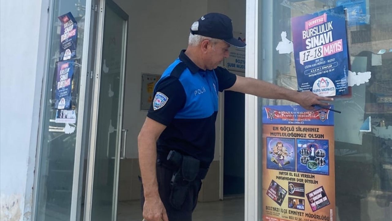 Polis ekipleri, düğünlerde olası tehlikelerin önüne geçmek için ilçedeki farklı noktalara ve iş yerlerine afiş astı.
