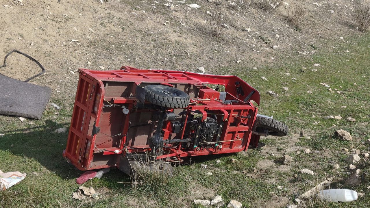 M.P. idaresindeki 3 tekerlekli motosiklet Kestel köyünde şarampole devrildi.