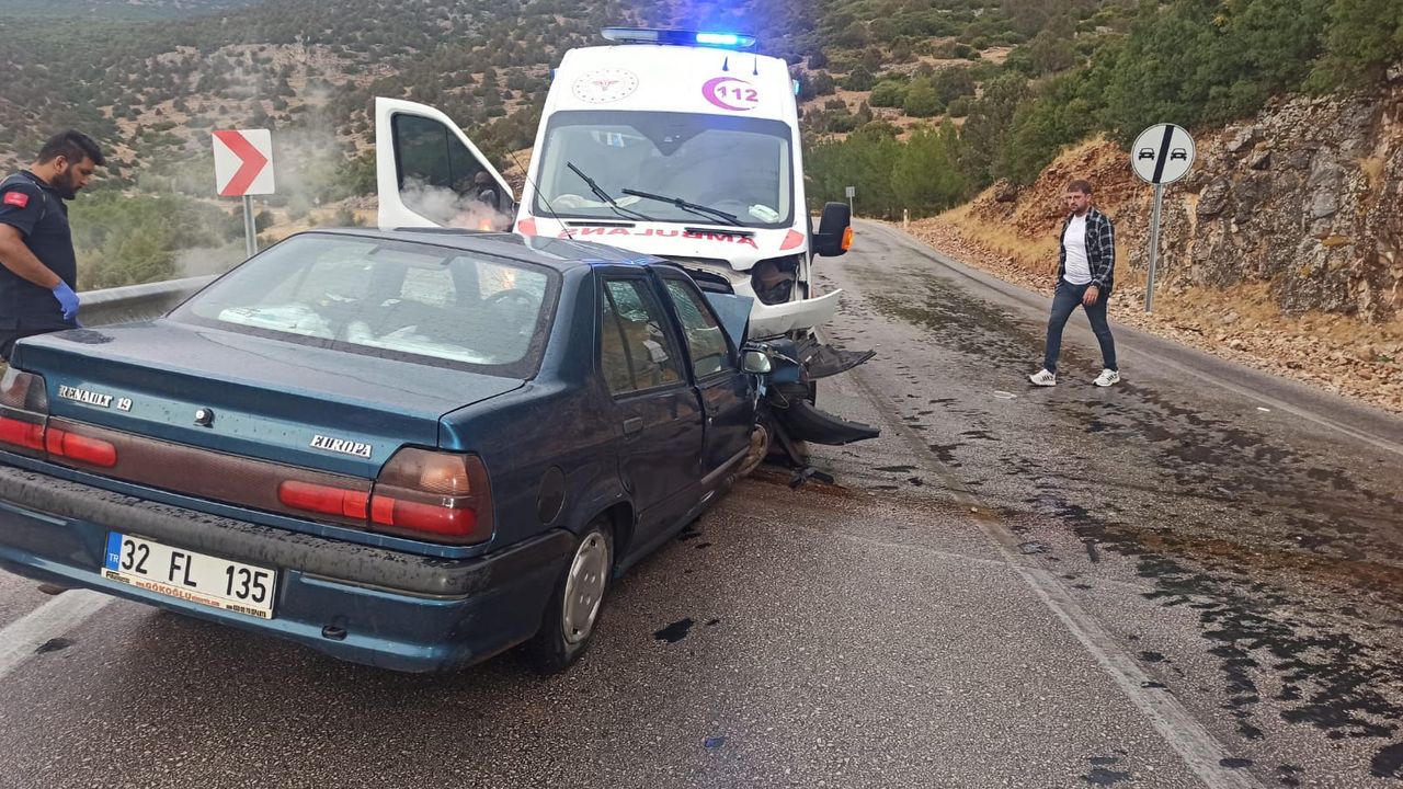 Adem A. (37) idaresindeki 32 FL 135 plakalı otomobil, Peçenek mevkiinde Osman B.Ö. (32) yönetimindeki 15 SK 986 plakalı ambulansla çarpıştı.