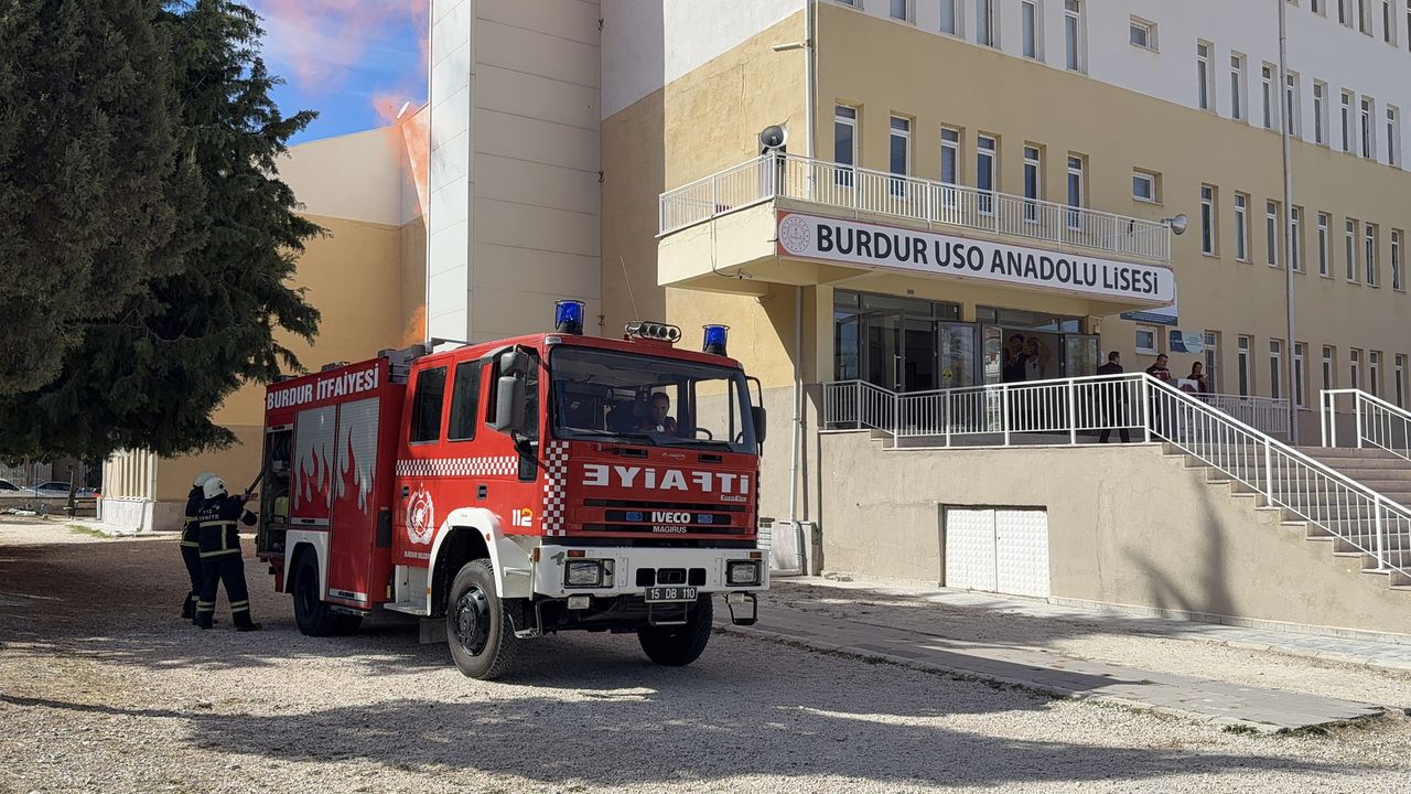 USO Anadolu Lisesi'nde yapılan tatbikatta, senaryo gereği merkez üssü Ağlasun olan 6,9 büyüklüğündeki depremde okulda alarmın çalmasının ardından öğrenciler sınıflarda 'çök-kapan-tutun' hareketini uyguladı.