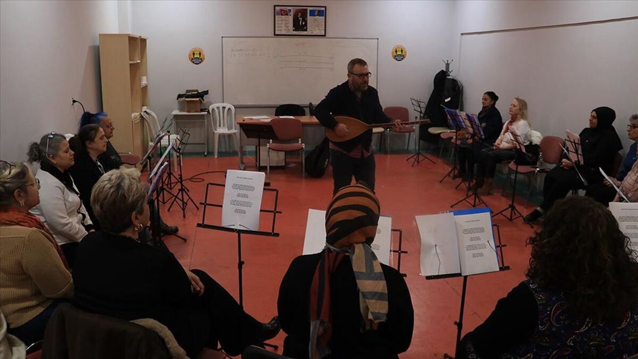 Yaklaşık 4 aydır haftada bir gün Yıldırım Belediyesi Barış Manço Kültür Merkezi'nde toplanan kadınlar, bağlama eğitmeni Engin Sezer yönetiminde çalışmalarını sürdürüyor.