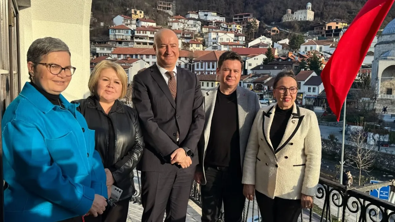 Bursa Osmangazi Belediye Başkanı Erkan Aydın, ‘Osmangazi Kardeşler Buluşması’ programı kapsamında gittiği Balkanlarda önemli temaslarda bulundu. Türkiye Cumhuriyeti Priştine Büyükelçisi Tunç Angılı’yı ve Türkiye Cumhuriyeti Prizren Başkonsolosu Celal Doğan’ı ziyaret eden Başkan Aydın, bölgede işbirliği içerisinde gerçekleştirilebilecek projelere ilişkin fikir alışverişinde bulundu.BURSA (İGFA) - Bursa Osmangazi Belediye Başkanı Erkan Aydın, ‘Osmangazi Kardeşler Buluşması’ projesi kapsamında gittiği Balkanlarda, Osmangazi Belediyesi ile Balkanlardaki kardeş şehirleri arasındaki ekonomik ve sosyal ilişkileri geliştirmek adına önemli adımlar attı. Kuzey Makedonya’nın başkenti Üsküp’te gerçekleştirdiği ikili temasların ardından Balkanların bir diğer önemli ülkesi Kosova’ya giden Başkan Aydın, Türkiye Cumhuriyeti Priştine Büyükelçisi Tunç Angılı’yı ve Türkiye Cumhuriyeti Prizren Başkonsolosu Celal Doğan’ı ziyaret etti. Gerçekleşen görüşmelerde Osmangazi Belediyespor Yönetim Kurulu Başkanı Fatih Karayılan ve Osmangazi Belediye Başkan Yardımcısı Tolga Kornoşor da yer aldı.