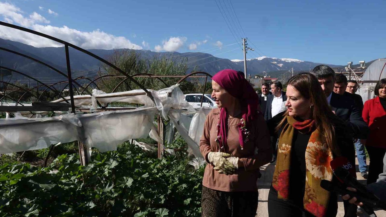 Antalya Büyükşehir Belediyesi Başkan Vekili Büşra Özdemir, 22 Ocak'tan bu yana etkili olan yağış, fırtına ve hortumdan etkilenen bölgelere geçmiş olsun demek ve çiftçilerin ihtiyaçlarını dinlemek amacıyla Demre, Finike ve Kumluca ilçelerini ziyaret etti.