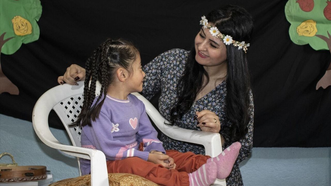 Kansu Mahallesi'nde ailesiyle yaşayan ve kemiklerde kolayca kırılmalara yol açan "Osteogenesis Imperfecta" hastalığı nedeniyle okula gidemeyen İlknur'un yüzü, masal anlatıcısı Rezan Ezer ile güldü.