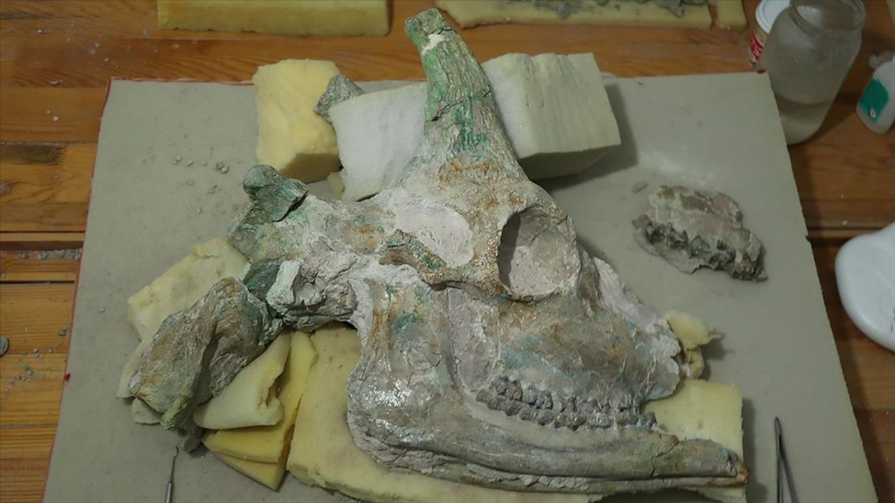 Erol, bu sezonki kazılarda yaban domuzu türüne ait çok sayıda fosil bulunmasının yanı sıra yeni bir tür olabileceğini düşündükleri gergedan kafatası da bulduklarını aktardı.