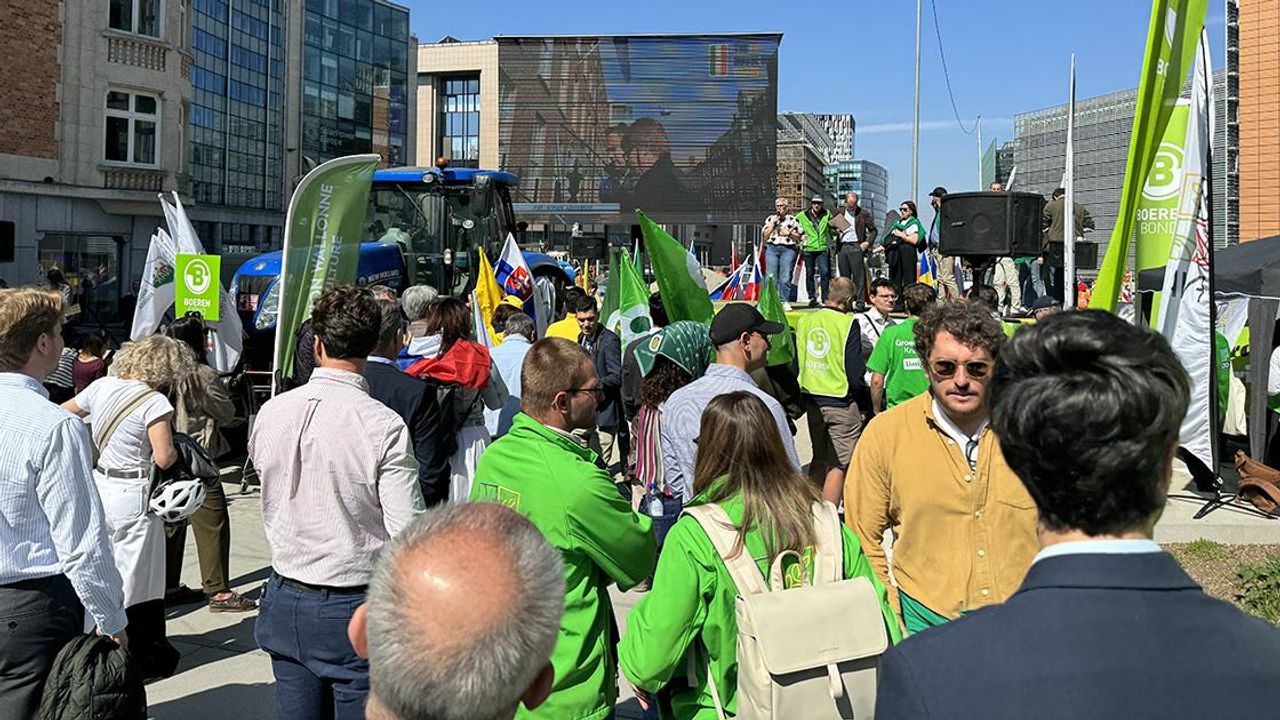 Protesto, AB Komisyonu Başkanı Ursula von der Leyen'in açılışını yaptığı 2025 yılı AB Bütçe Konferansı sırasında gerçekleştirildi.