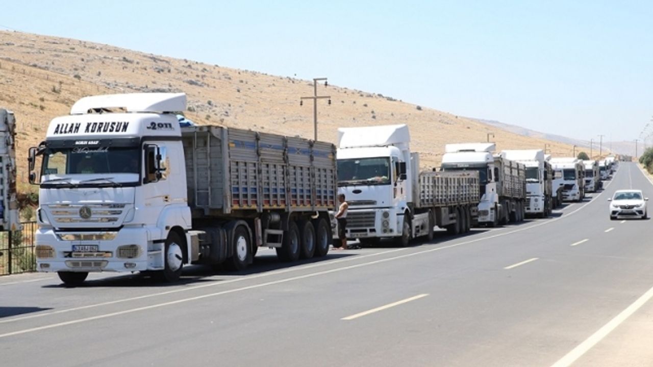 Türkiye'nin farklı illerinden gelen ve Suriye'ye gönderilen insani yardım malzemeleri ile çeşitli eşya taşıyan tırlar, Cilvegözü Sınır Kapısı'nda yaklaşık 3 kilometrelik kuyruk oluşturdu.