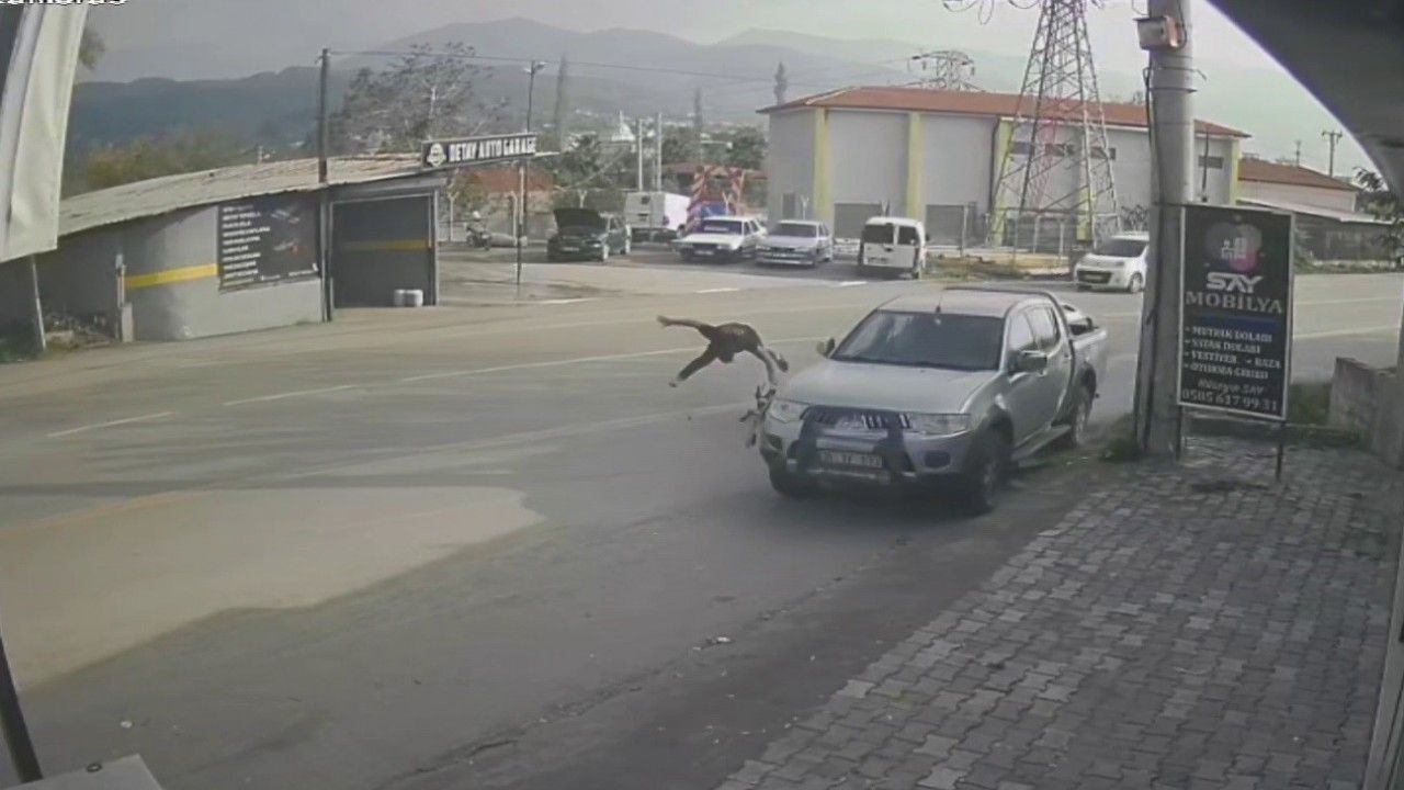 Kaza; Dörtyol ilçesi Altınçağ Mahallesi’nde yaşandı. Seyir halinde ilerlerken karşı şeride geçen motosiklet, karşıdan gelen ciple kafa kafaya çarpıştı. Kazada ciple çarpışan motosikletin sürücüsü savrularak metrelerce havaya uçtu. Kaza anıysa an be an güvenlik kamerasına yansıdı. Yaralı motosiklet sürücüsü olay yerindeki ilk müdahalenin ardından hastanede tedavi altına alındı.