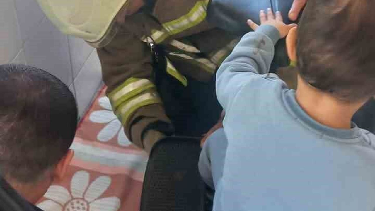 Hatay'ın Erzin ilçesinde spor aleti olan eliptik bisikletin pedalına ayağı sıkışan çocuğu itfaiye ekipleri kurtardı.
