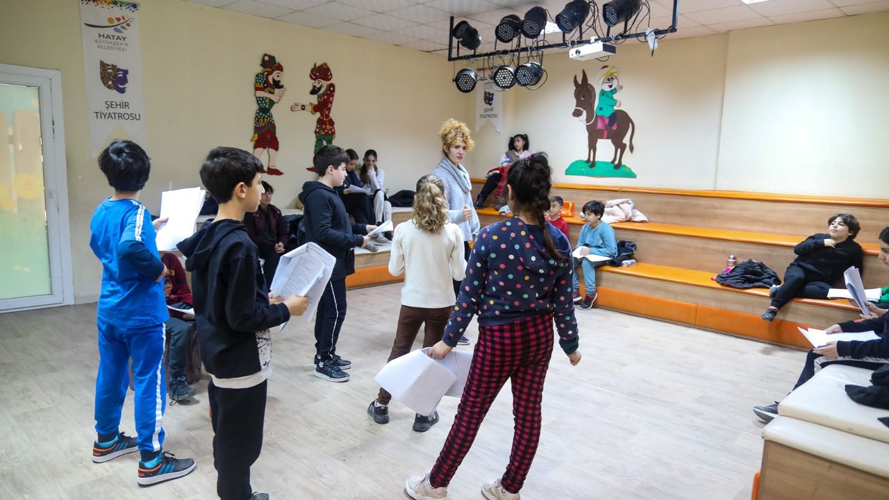 Hatay Büyükşehir Belediyesi Şehir Tiyatrosu bünyesinde çalışmalarına devam eden Çocuk Tiyatrosu ve Korosu hazırlıklarını sömestr tatilinde de sürdürüyor.