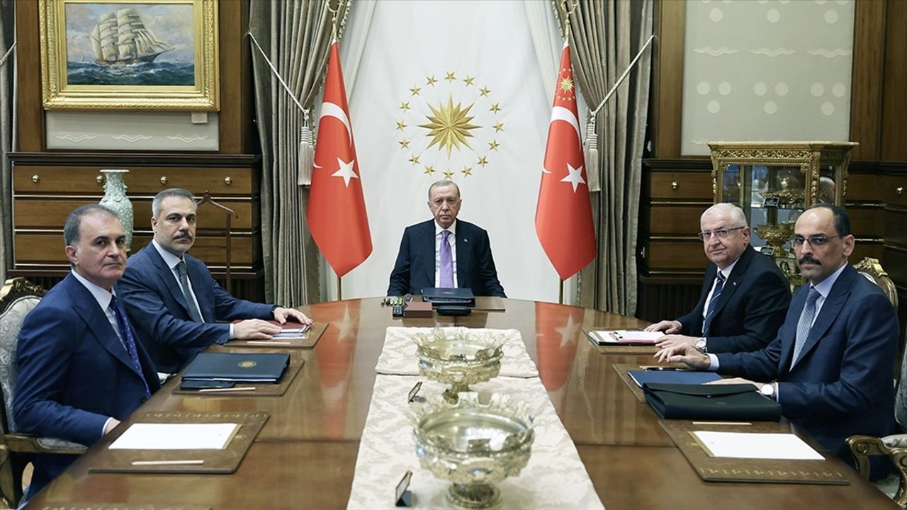 Toplantıya Cumhurbaşkanı Erdoğan'ın yanı sıra Dışişleri Bakanı Hakan Fidan, Milli Savunma Bakanı Yaşar Güler, Milli İstihbarat Teşkilatı Başkanı İbrahim Kalın ve AK Parti Sözcüsü Ömer Çelik katıldı.