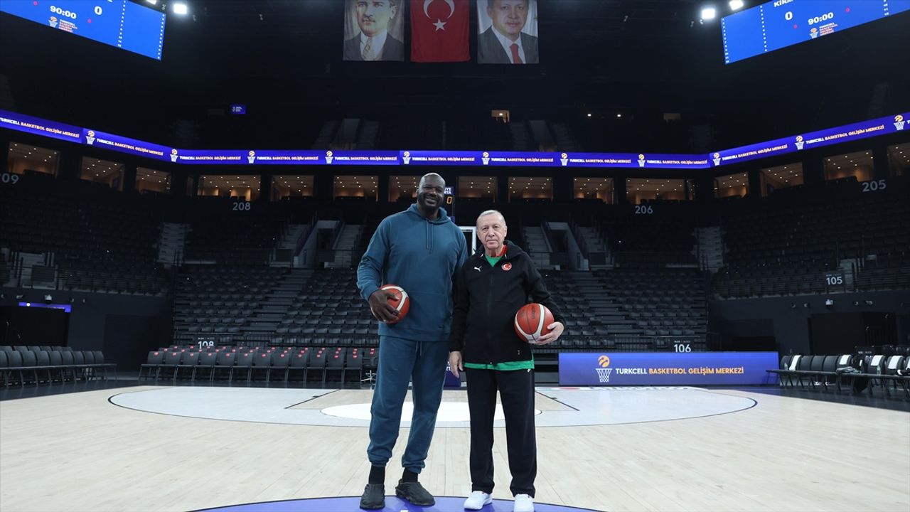 ANKARA (AA) - İstanbul'da Turkcell Basketbol Gelişim Merkezi'nde basketbol oynayan Erdoğan ve O'Neal, basketbol toplarını imzaladı.