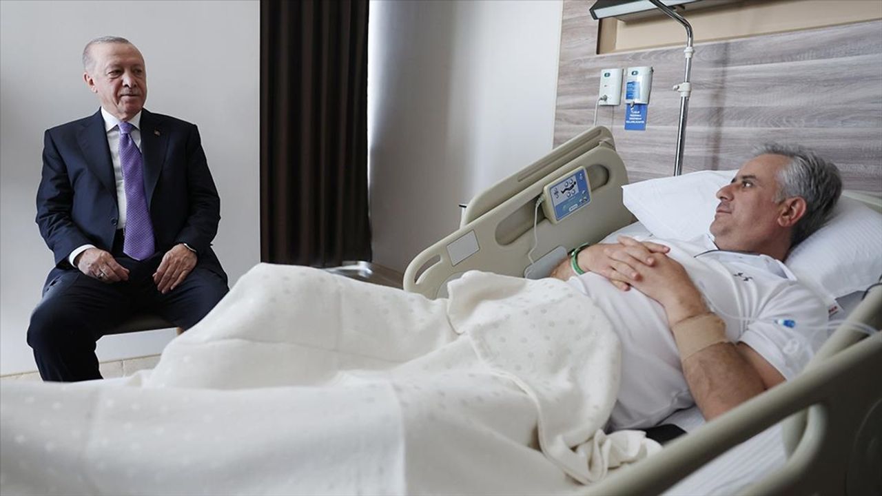 Yalçın'ı hastane odasında ziyaret ederek "geçmiş olsun" temennisinde bulunan Erdoğan, doktorlardan sağlık durumuna ilişkin bilgi aldı.